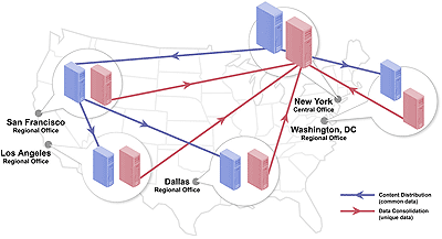 WANSync Content Distribution provides a powerful and economically feasible data consolidation solution by leveraging a company's central location using equipment, personnel, and software already in place. With the requirements mandated by Sarbanes-Oxley, WANSyncCD, data availability and protection is managed at the data center level ensuring branch office data is protected according to the law. Branch Office support includes installation on existing branch office servers to deliver data to a central location, and in the reverse: distribute data from headquarters to the branch offices.